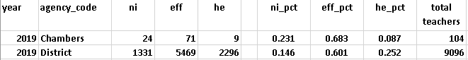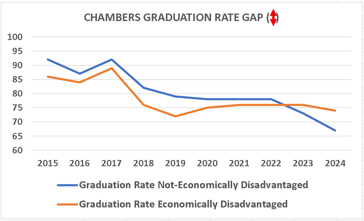 In the 2019 last full year before the Pandemic, which also was a low point for Chambers(Vance) economically disadvantaged student graduations; the Chambers' highly effective teacher percentage was one-third the district average. This should have been a sign to the Board that Chambers students weren't being supported.