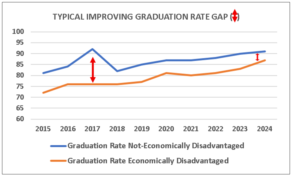 allowed both groups' graduation rates to free-fall for ten-years until the disadvantaged